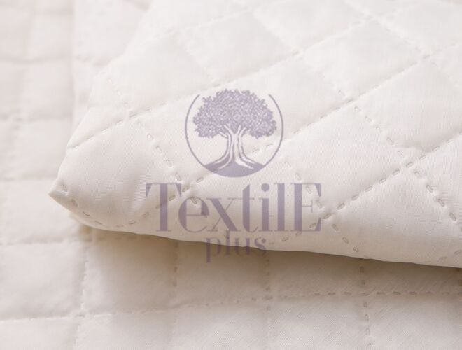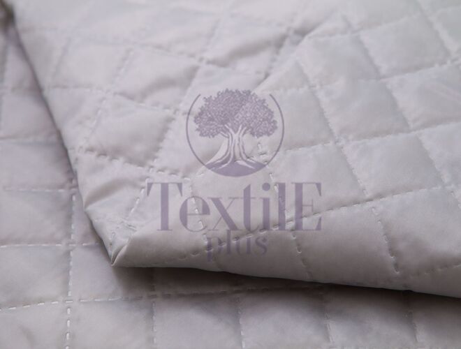 Ткань, стеганная на синтепоне – техническая ткань, дублированная синтепоном, плотностью 100 г/м2. Полотно объемное и стеганое, геометрическими фигурами вдоль всего полотна ромбами, размером 3,5 см. Стежка тканей при помощи ультразвука за счет кратковременного нагрева материалов в местах их соединения до температуры их спаивания.
